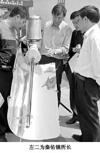 1999年研制成功“家用同步跟蹤型太陽能開水器”新產品,專利號:ZL 00 2 19088.5。該產品又稱“便攜式無電源自動跟蹤太陽能開水裝置”,專利號:ZL 200620069377.3。 它是是利用真空吸熱管和鏡面拋物柱面相結合,在小型同步裝置作用下,拋物面自動跟蹤太陽運動,將陽光反射并聚焦到真空吸熱管的表面,以十數倍的能量對單根真空吸熱管中的水或介質進行加熱,通過熱交換,產生100℃以上的高溫直接加熱開水或加熱食物的新型裝置。屬于太陽能光熱轉換技術領域。其特點是無需任何電力即可實現高精度自動跟蹤,每天跟蹤陽光長達10小時?捎糜诔鞘屑彝、廣大農村、山區(qū)、草原、島嶼、旅游區(qū)、邊防哨所等,在缺少能源和無電源地區(qū)更能顯示其獨特功能,是一種全新的低價位、高性能、普及型、中高溫太陽能熱利用范疇的可再生能源產品。