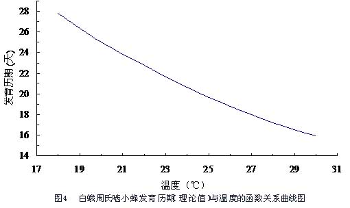6 研究了白蛾周氏嚙小蜂發(fā)育與溫度的關(guān)系,為人工大量繁蜂用于防治打下了基礎(chǔ) 計算出了小蜂的發(fā)育起點溫度為6.14℃, 有效積溫為365.12日度。并利用數(shù)學(xué)模型計算出了發(fā)育歷期的理論值。為人工繁蜂時溫度的確定、按時出蜂用于防治提供了保證[20]。