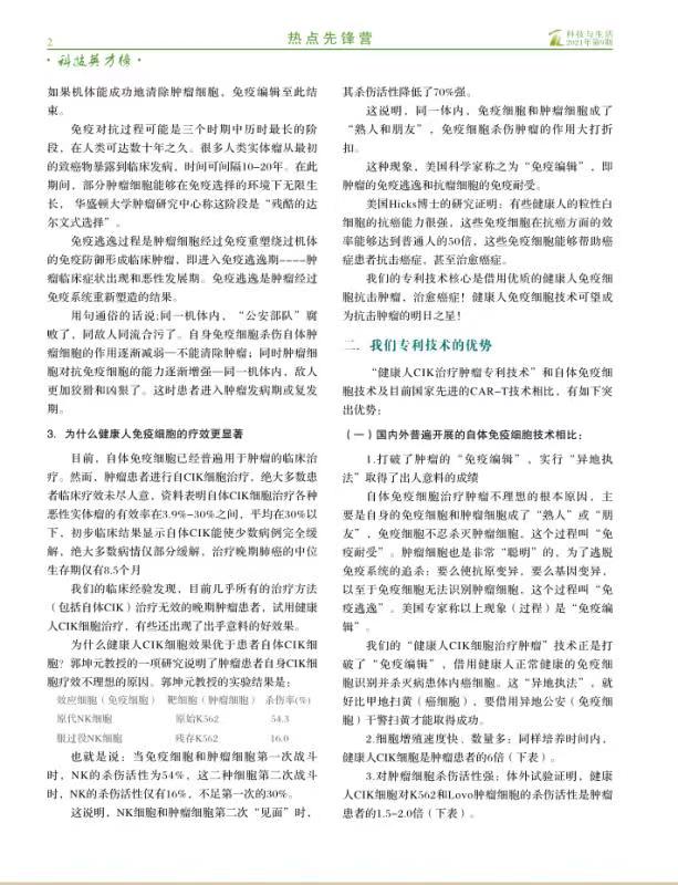2.1. 我們的健康人免疫細(xì)胞治療腫瘤的專利技術(shù)為基礎(chǔ)。