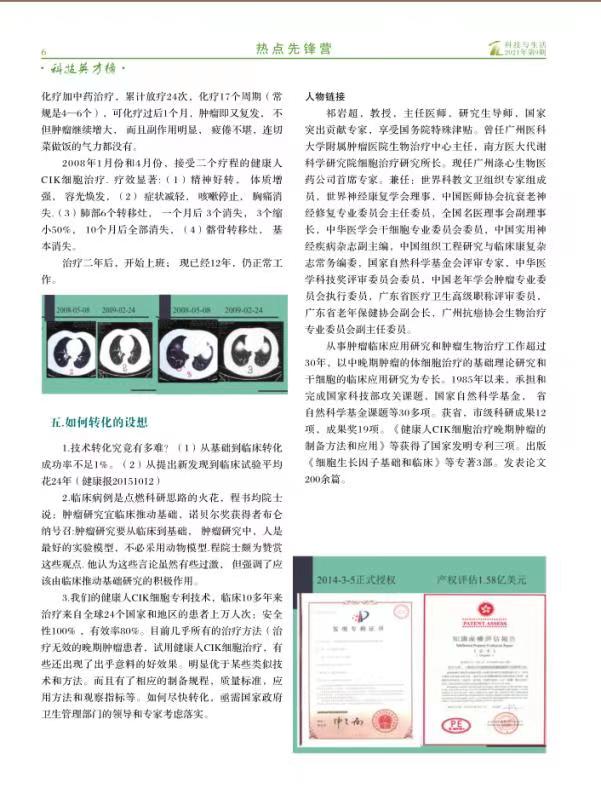 而我們的健康人 CIK 技術(shù)采用國(guó)家專利技術(shù),沒(méi)有任何技術(shù)風(fēng)險(xiǎn),安全百分百。