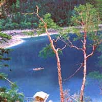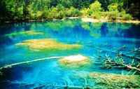 許多人很小的時(shí)候就從神話故事里得知,天上王母娘娘的宮苑內(nèi)有五彩瑤池,可誰也沒見過,然而在九寨溝卻能實(shí)實(shí)在在地見到彩色的湖泊,那便是藏匿于則查洼溝底部的五色池。透過森林間隙可見池中有的地方水色蔚藍(lán),有的淺綠,有的絳黃,有的灰黑,有的粉藍(lán)……若有山風(fēng)吹過,那更是滿湖五彩繽紛,真的恍如五彩瑤池落入人間。在當(dāng)?shù)卦,這是仙女的胭脂水染成。然而事實(shí)上它卻和生長于湖泊內(nèi)的水綿、輪藻、水蕨等水生植物形成的水生群落密切相關(guān)。 與之相比較,曰則溝內(nèi)的五花海更顯壯觀。當(dāng)人們從山上俯視三面環(huán)山、呈葫蘆狀的海子,會(huì)發(fā)現(xiàn)它像一個(gè)倒放的彩色大葫蘆向山下傾注著永不止息的彩色水。十分奇特的是葫蘆腹部有一處鹿腿形的圖案,長約十多米,整個(gè)腿色為淺藍(lán)色,而腿的中間因湖底巖層呈梅花形的一個(gè)個(gè)陷坑而呈現(xiàn)出墨綠色,遠(yuǎn)遠(yuǎn)望去,色調(diào)層次分明,自然構(gòu)成一支梅花腿形。傳說這是山神攆山時(shí),一頭受驚的梅花鹿不小心丟下的。