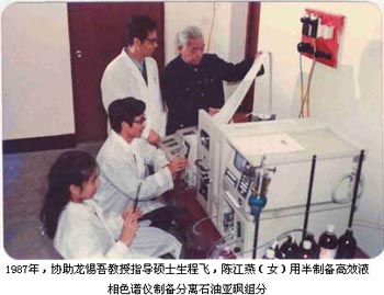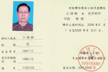 龍?zhí)栉峤淌谠?jīng)告誡年青教師:教師不僅要教好書,還要搞科研,否則就會(huì)成為教書匠。這一至理名言,激勵(lì)著年青時(shí)期的古國(guó)榜求知上進(jìn), 為國(guó)家、為人民多作貢獻(xiàn)。上世紀(jì)七十年代末,古國(guó)榜參加了龍?zhí)栉峤淌诮M建的萃取化學(xué)研究課題組,和張振民、林養(yǎng)素等同事開始研制具有工業(yè)應(yīng)用前景、而國(guó)內(nèi)尚無生產(chǎn)的石油亞砜萃取劑。在北京石油科學(xué)院支持下,查找出具有高含硫石油資源的地方,并到現(xiàn)場(chǎng)調(diào)研,決定以高含硫柴油為原料制取石油亞砜。通過反復(fù)實(shí)驗(yàn)和研究,他們分析了石油亞砜主要組分的結(jié)構(gòu),系統(tǒng)地研究了石油亞砜萃取金、鈀、鉑的性能和機(jī)理,成功地進(jìn)行了半工業(yè)生產(chǎn)。經(jīng)過二年的不懈努力,最終實(shí)現(xiàn)了工業(yè)化生產(chǎn),成果轉(zhuǎn)讓給了廣州農(nóng)藥廠,江漢油田石油化工廠,并獲得了1982年廣東省高教局科技進(jìn)步四等獎(jiǎng),1992年國(guó)家專利局批準(zhǔn)為發(fā)明專利。1981年,國(guó)家學(xué)位辦批準(zhǔn)成立授予應(yīng)用化學(xué)(萃取化學(xué))碩士學(xué)位點(diǎn)。